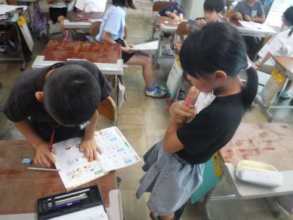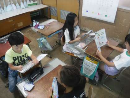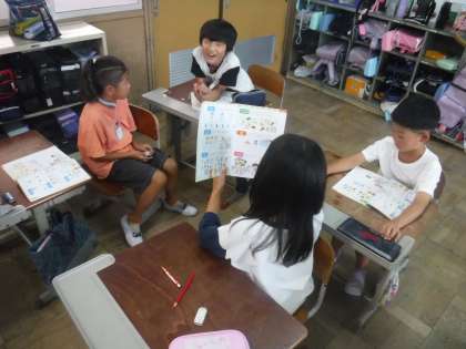 外国語活動の時間では、好きなものをたずねたり、答えたりする活動をしています。