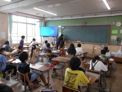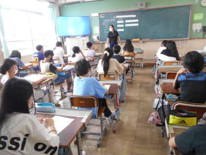 栄養教諭の早光先生に中学校給食について教えてもらいました。7月11日(火)に中学校給食を食べます。どんな給食かわくわくしています。