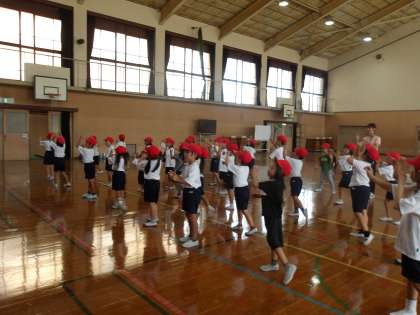1年生は、入場で少しダンスをします。動画を見ながら、