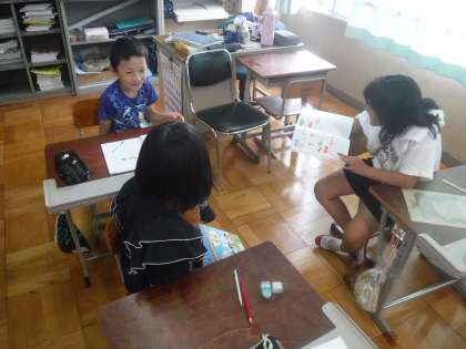 最後に行う「友達クイズ」のために、自分から進んで友達にたずねていました。