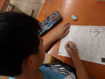 夏休み前から練習してきているカタカナの練習が、もうすぐ終わろうとしています。