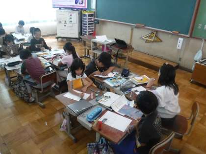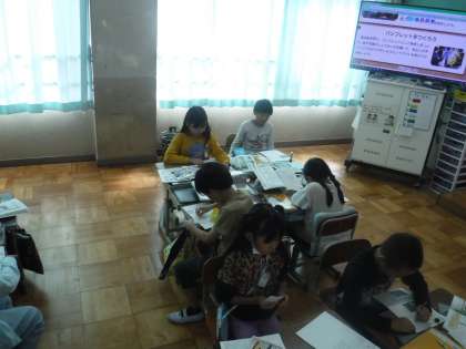 社会科の学習では、太陽精工について調べたことをパンフレットにまとめています。