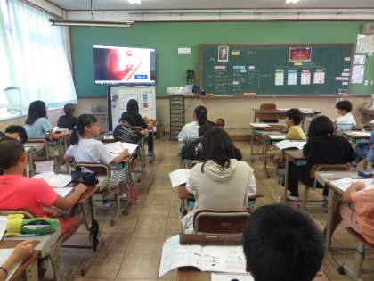 音楽の学習で、オーケストラに使われている楽器について学びました。