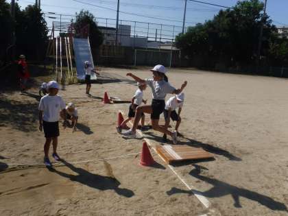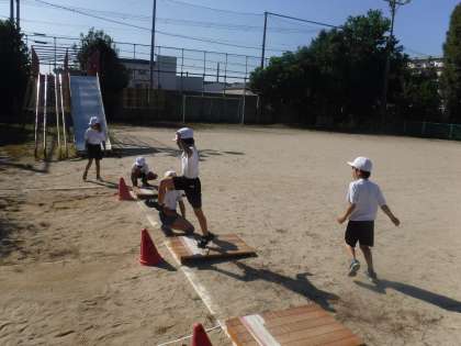 体を使い、踏みきりは力強く、目線は斜め上、などたくさんのことを意識して取り組んでいました。