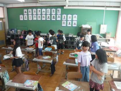 その後の自分のイニシャルを伝える活動も頑張っていました!