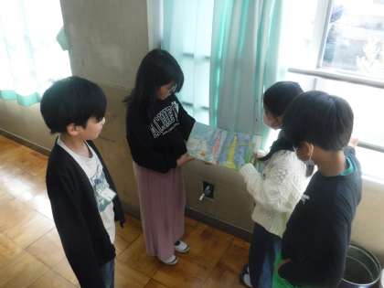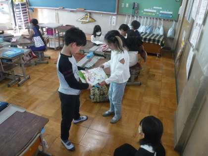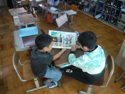 国語の学習で決めた本を、1年生に読んでもらうために練習をしています。