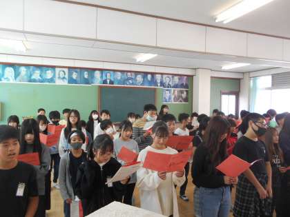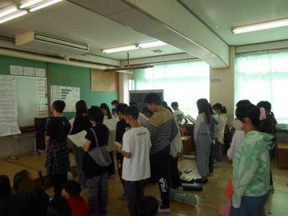 来週から始まる体育館での練習に向けて、声の出し方などを教えてもらいました。みんないい表情で歌うことができています。音楽フェスティバルまで2週間です。さあ、みんなで頑張りましょう。