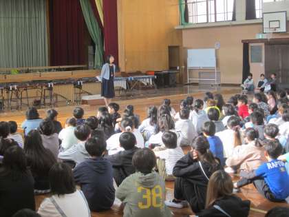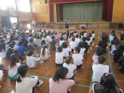 11月の朝会がありました。校長先生から「祥栄なかよし憲法」について話をきいて、あいさつやお礼の言葉の大切さを確認しました。その後、後期の学級代表の紹介がありました。