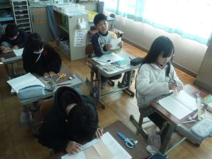 算数の学習では、折り紙を使って「二等辺三角形」や「正三角形」を作りました。