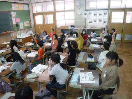 ジェレミー先生が考えた3ヒントクイズを解くために、ヒントを求めたり、答えを言ったり、様々な言い方に慣れ親しんでいました。
