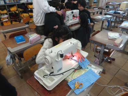 家庭科の学習で、ミシンを使っています!
