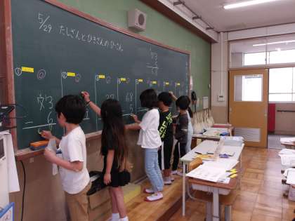算数の時間に筆算の学習をしています。位をそろえることが大切ですね。