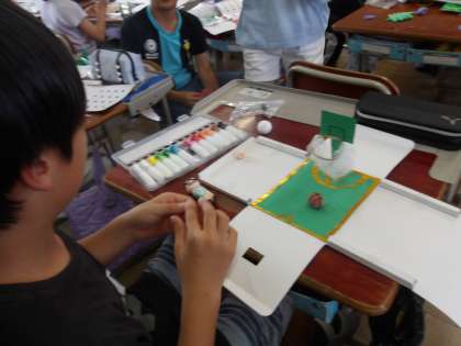 まだ制作途中ですが…箱をのぞいてみると広がるいろいろな世界をみんな夢中で作っています。箱の形にするのは一番最後ですが、どんな世界が小さな窓から見られるのか今からワクワクします。