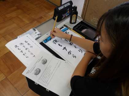 今日は小筆に挑戦しました。太筆とは違って,筆がプルプルとふるえる中,始筆や終筆にも気を付けて丁寧に書き上げました。