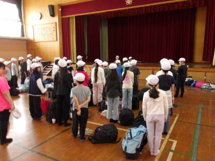 出発式。リーダーが立派に司会を務めていました。きっと楽しい思い出になりますね。保護者の皆様,朝からご準備ありがとうございました。
