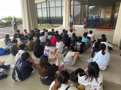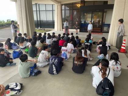退館式です。子どもたち、従業員の方と打ち解け、楽しい時間を過ごしました。美味しいごはん、ひろいお風呂、かっこいい太鼓、大満足でした。