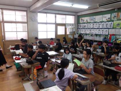 英語の学習です。身近な人の紹介を英語でしました。紹介だけでなく、中には、質問する場面もあり、さすが5年生です。最後は、紹介している場面を動画で各自撮影しました。