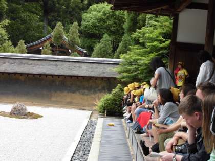 しおりの中のクイズに「石庭の中の石は何個配置されているか」という問題もあり,いろいろな角度から石庭の石の数を数えていました。