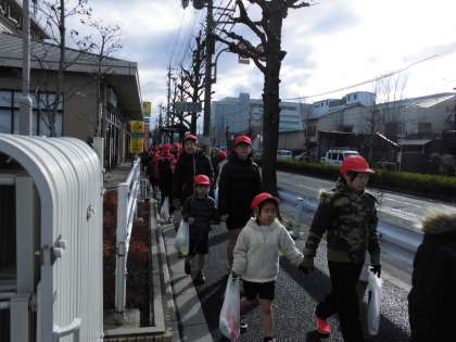 学校から桂川河川敷までは,なかよし学年できょうだいのように手をつなぎながらほほえましく向かう姿も見られました。