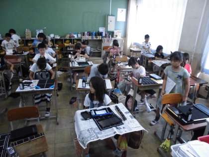 今日は,準備や後片付けの方法を確認し,筆の持ち方や正しい姿勢を意識して学習に取り組みました。