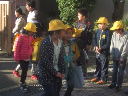 登校してきた来た子どもたちも,いつもよりたくさんのあいさつの声に,恥かしそうにしながらも“おはよう”の声を返していました。