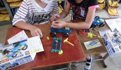 今日は,光電池をつないでモーターを回したり,豆電球に明かりをつけたりしました。