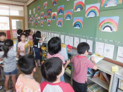 「色・形・いいかんじ!」「色を混ぜ合わせて」の鑑賞をしました。友達の作品のいいところや工夫しているところをみつけました。今日感じたことを,次回の自分の作品に生かせるといいなと思います。