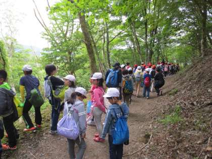 4日(土)は朝から滝谷山に登りました。全員無事に山頂に行って、戻ってくることができました。疲れてきたり、途中でつまづいて転倒したりする子もいましたが、みんなで励ましの声をかけ合っていたところが素敵でした。