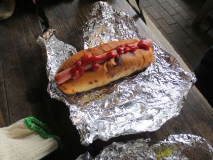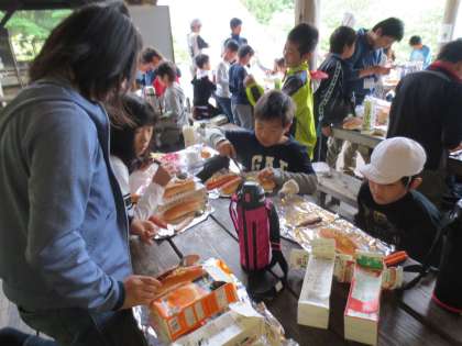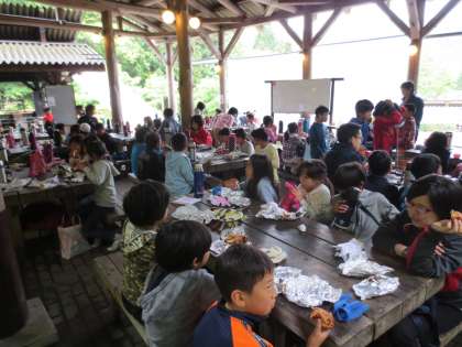 5日の朝はパックドックを作りました。アルミホイルの包み方や火の加減によって出来上がりが一人ずつ違っていました。おいしい朝ごはんでした。
