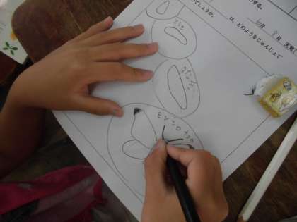 「こん虫をそだてよう」では,一時間目に,たまごからモンシロチョウになるまでの過程を予想しました。3年生の理科では植物や昆虫などに関わって学習を進めていきます。理科の学習を通して,自然の尊さや四季があることの良さを感じてほしいと思います。