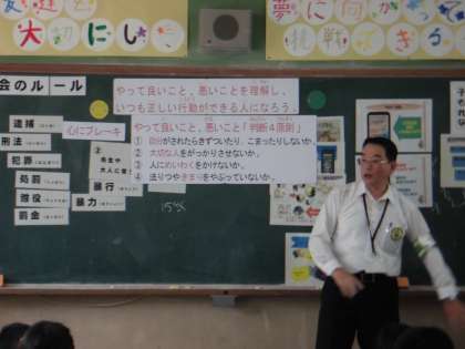 6月15日(水)3校時に非行防止教室がありました。実際に警察官としてご活躍されていた方の話をしっかりと聞いていました。