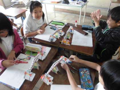 重さの単元に入りました。1時間目では,教科書についていた紙のはかりを制作し,身近な文房具の重さを比べました。「意外!」「けしごむけっこう重いなあ」と,グループで意見を出し合いながら活動できました。