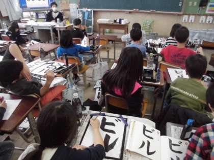 今日の5・6時間目は書写でした。毛筆ではじめて,カタカナの「ビル」を書きました。