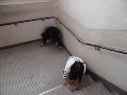 一生懸命掃除をする姿をみつけました。三年生は,教室,教室前廊下のほかにも,くつばこと東階段,西階段を任されています。特に階段はたくさんの人が使い,来校者の方も歩かれるので,きれいにするよう意識しています。今日もぴかぴかにできました。