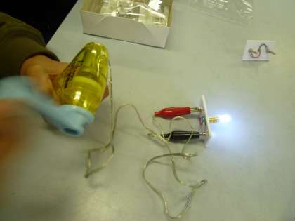 理科「電気の性質とはたらき」で手回し発電機をつかって,豆電球に光がついたりオルゴールの音がなったりするのかを実験しました。