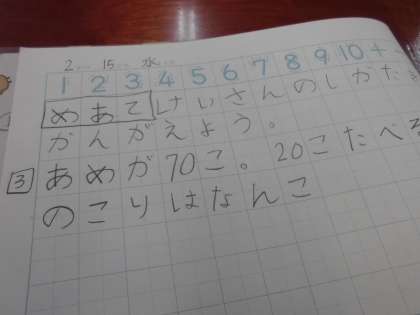 各教科で,「めあて」を確かめて学習を始めています。この時間は算数でした。ノートの書き方ができてくると,学習の道筋もまとめやすくなります。