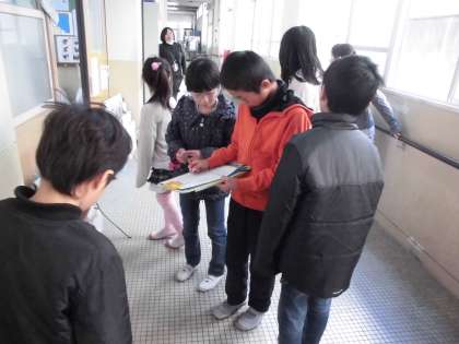 今日は,1年生から6年生の縦割りグループで,クイズラリーをしました。様々な問題をグループのみんなで助け合って解いていきました。1年生も一緒に活動できました。