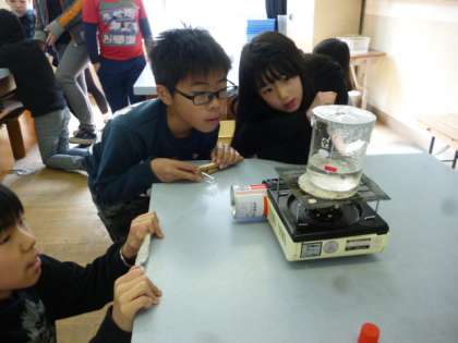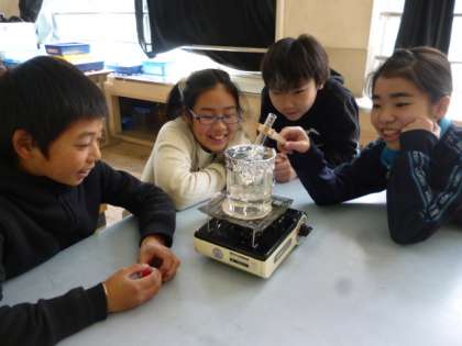 泡は水蒸気という目には見えない気体で,水蒸気が冷えて小さな水の粒になったものが湯気ということを知りました。次の単元で学習する『蒸発』と合わせて,冬吐く息が白いことや,お風呂上りに体から湯気がたつことの説明ができるといいなぁ〜。