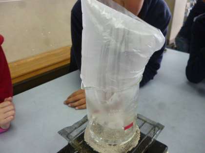 目には見えない水蒸気を集める実験です。