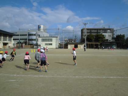 1年生 「ボールけりゲーム」がんばっています。