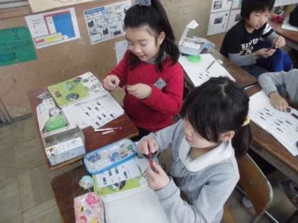 今日の理科の学習では,じしゃくの同じきょく同士を近づけるとどうなるか,実験しました。ふだんの生活の中から,なんとなく結果はわかりながらも,友だちと交流しながら実験を進めることができました。
