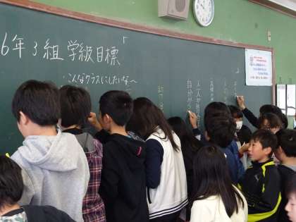学級目標や委員会活動,当番活動など,たくさん決める事がある中で,子ども達は意見を出し合いながら決めることができています。時には互いに譲り合うことも・・・。
