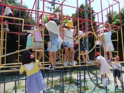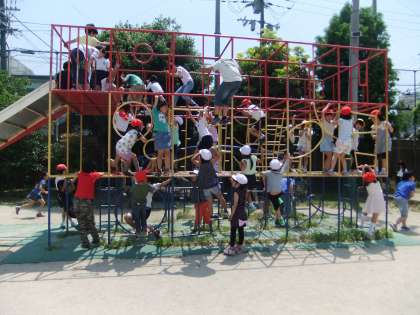 子ども達は,とても楽しそうに遊具遊びをしています。