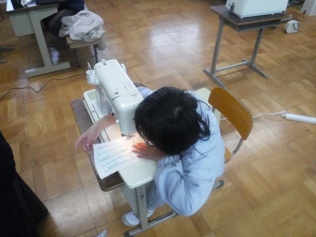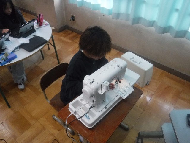 家庭科の学習では、ミシンに挑戦しています!