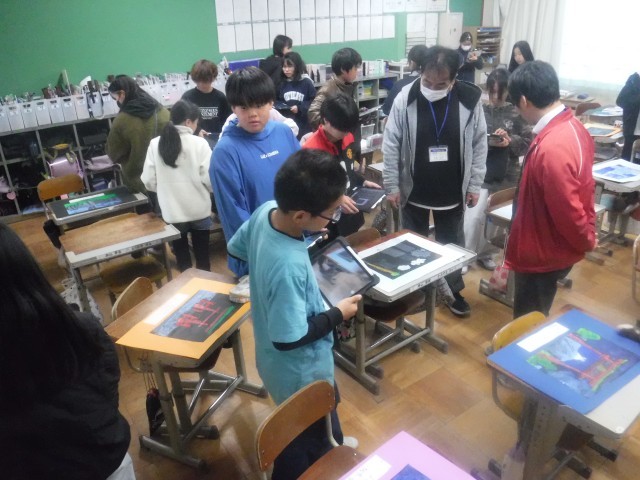 絵を鑑賞しているときは、全体の絵を静かに見て、一人一人の作品の良さを集中して鑑賞していました。