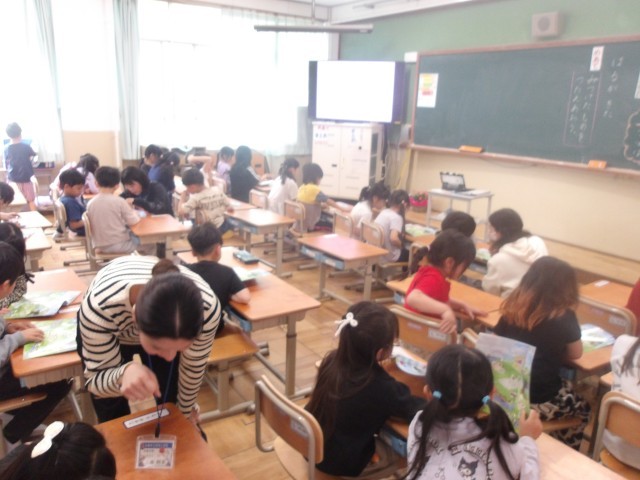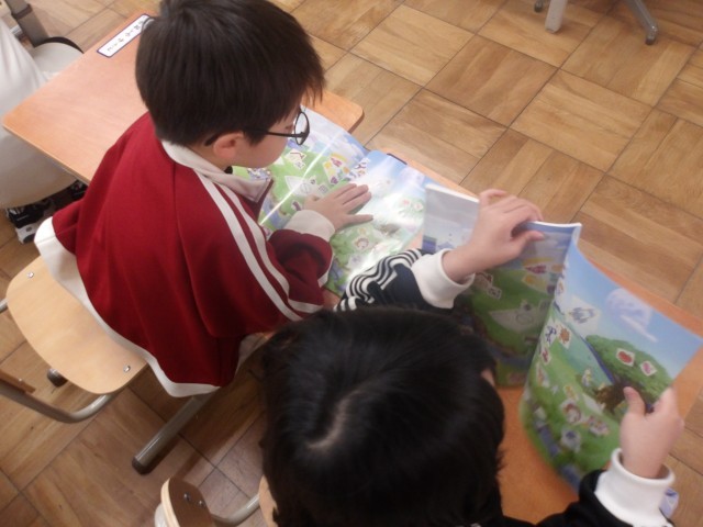 絵の中から、見つけたものを隣の人に伝えたり、みんなに伝えたりしました。