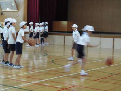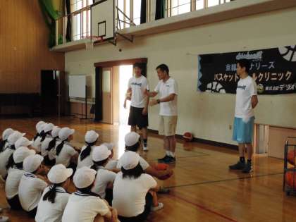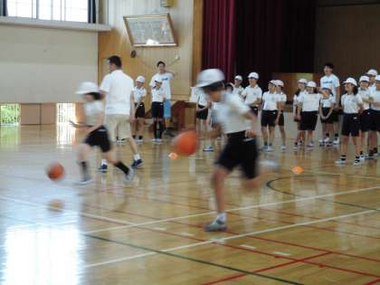 京都ハンナリーズの選手が学校に来られ,6年生にバスケットボールを教えていただきました。シュートやドリブルなど,プロの選手と一緒に楽しく活動することができました。