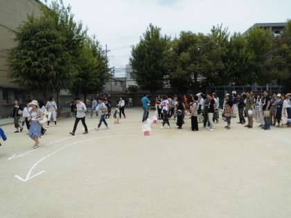 子どもたちが学校にいるときに震度5弱以上の地震等が起きた時,すべての児童を確実に保護者に引き渡すための訓練です。保護者のみなさんには,まず集合場所に集まったあと,順に担任のチェックを受けて児童を引き取ってもらいます。