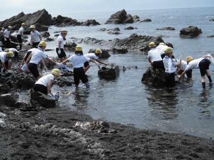 天候を心配していた午前中でしたが,日が差すいい天気となりました。みさきの家近くの宮崎浜の干潮の時間帯を狙って海辺に磯観察に出かけました。磯観察中,どんどん潮が引き,活動の場が広がり,いろいろな生き物が発見できました。子どもたちは夢中で磯の岩場を覗き込んだり,浜辺の砂浜を調べたり,あっという間に予定の時間を過ぎてしまいました。そのあと,みさきの家に戻り,家にあるプールで楽しみました。