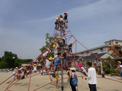 初夏のような日差しの中,梅小路公園まで歩きました。まず,公園で遊んだ後,イルカショーを見て,楽しみにしていたお弁当を食べました。再度入館して,グループでクイズラリーをしながら回り,また学校まで歩いて帰りました。